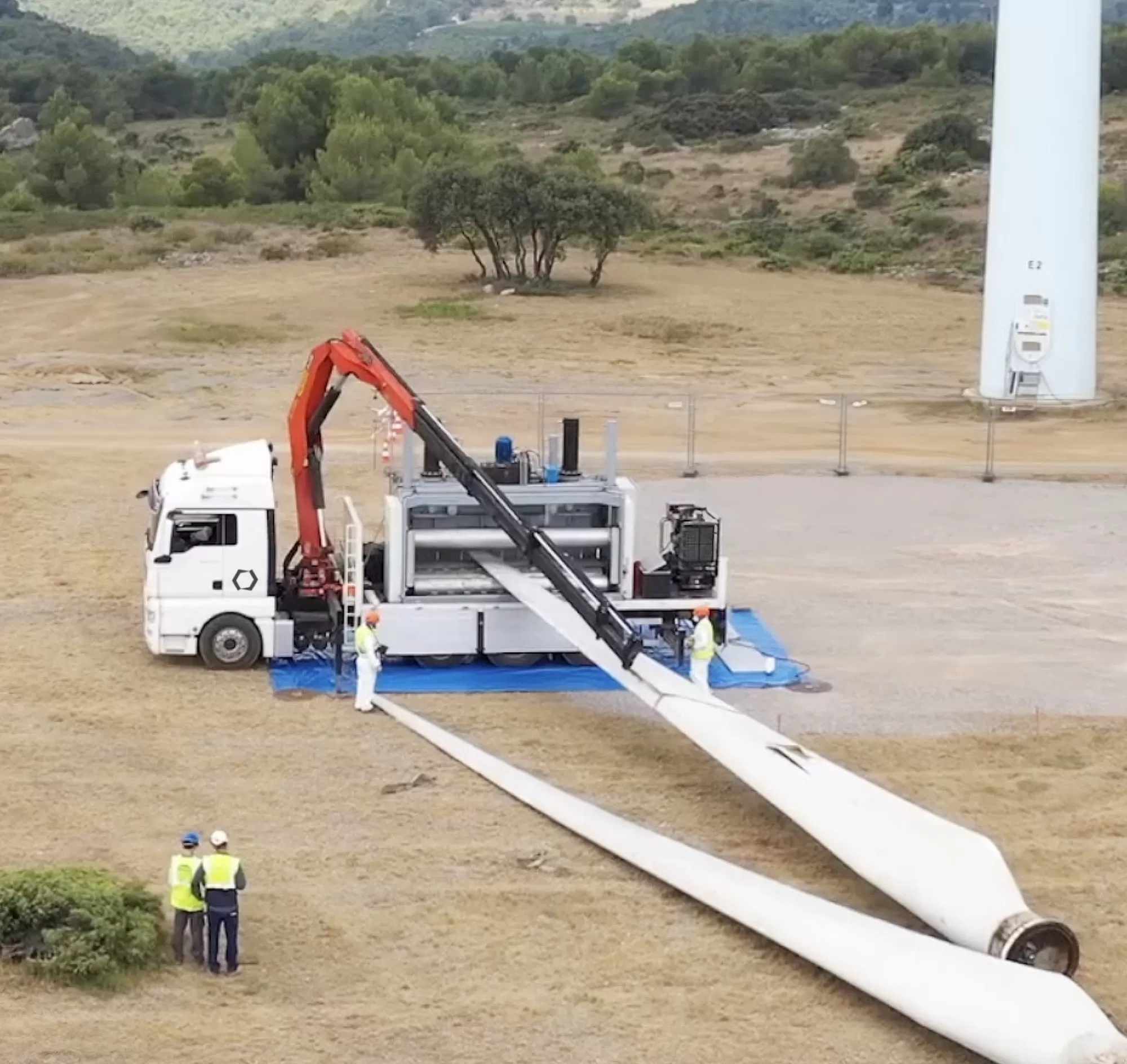 Smart cutting technology to provide fast, clean, easy and safe logistics during the wind turbine blade dismantling process, and facilitating the logistics and transportation.